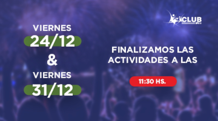 A partir del 6 de Marzo el club estará abierto los domingos de 9 a 21 hs, con piscina libre, familiar, clases de natación, Sala de Aparatos y se seguirán incorporando actividades. Socios de Fin de Semana: $ 1.250 (+ matrícula). Todos los socios deportivos podrán concurrir al domingo.