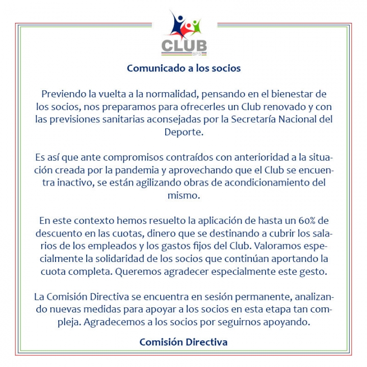 Una vez finalizado el llamado, se comunicarán los resultados en la página web del Club BPS (www.clubbps.com.uy), indicando el aspirante seleccionado y adjuntando una lista de dos suplentes ante cualquier eventualidad.